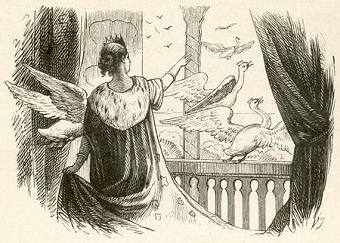 «Sì, posso aiutarti» disse la strega. «Questo è un granello d'orzo, ma non è di quelli che crescono nei campi del contadino e neppure di quelli che mangiano i polli; mettilo in un vaso e vedrai cosa succederà!» |